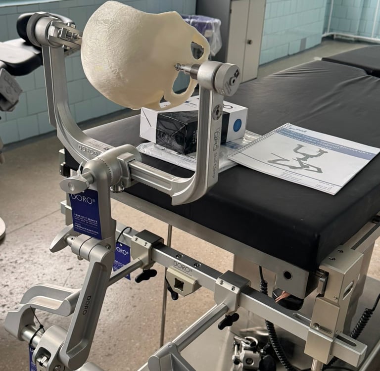 Це маст-хев під час нейрохірургічних операцій! Цей пристрій дозволяє надійно зафіксувати череп у стабільному положенні, що надзвичайно необхідно при втручаннях такої делікатності. Систему застосовують при лікуванні внутрішньочерепних пухлин, судинних аневризмів, черепно-мозкових травм та інших пошкоджень центральної нервової системи.